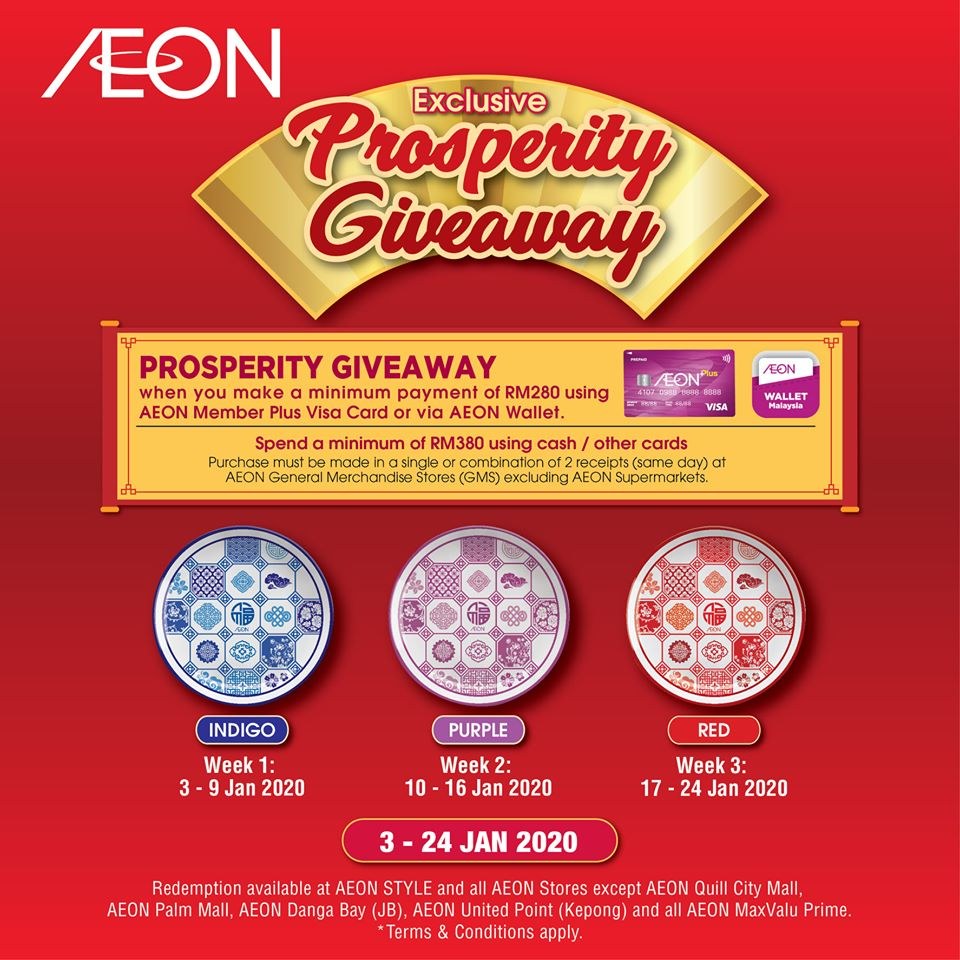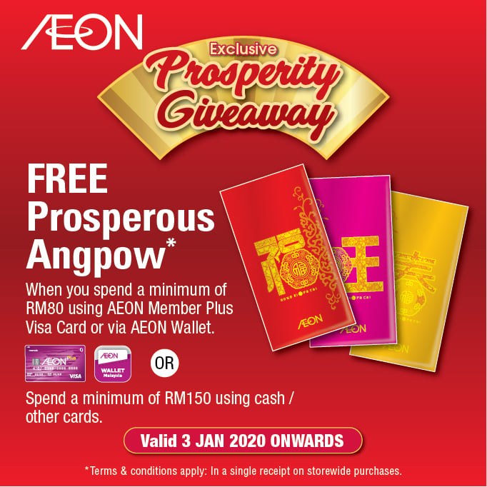 Usher in prosperity with Gong Xi Prosperity Rewards!๐ฎ Youโll get FREE Reward Vouchers when you spend on 4 & 5 Jan 2020 @ AEON GMS (Exclude Supermarket)๐